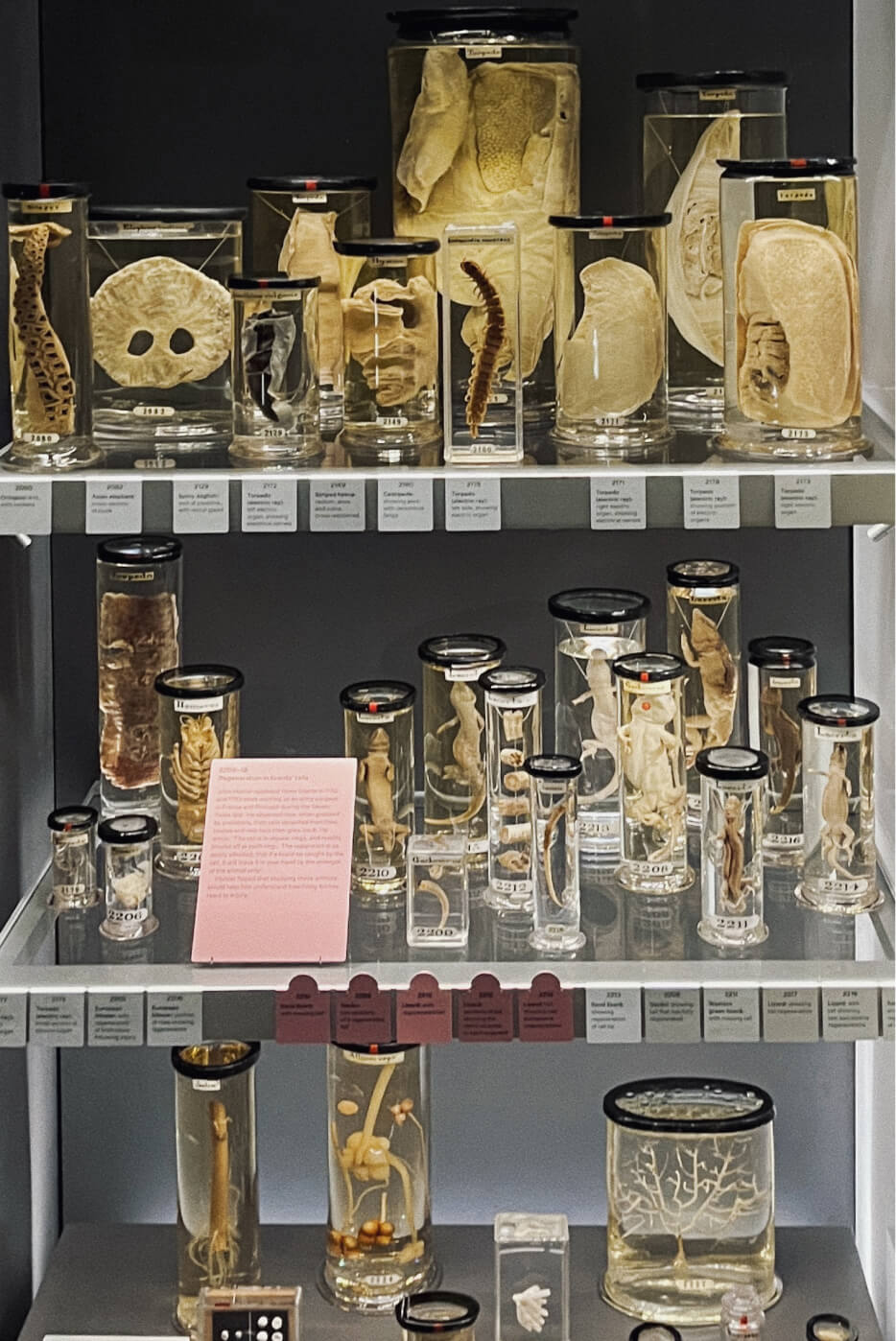 The Hunterian Museum in London houses a collection of preserved animal specimens collected by the 18th-century surgeon anatomist John Hunter. A large unassuming building with a large unassuming lobby accommodates a labyrinthine assembly of narrow rooms. A few minutes into the museum, the uncanny sensation that the sole dim light in the blue-walled rooms is not engendered by any electrical lamps but emanates from the fluorescent anatomical preparations lining the walls floor to ceiling.